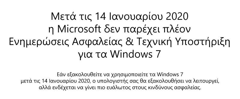 Μετά τις 14 Ιανουαρίου 2020 η Microsoft δεν παρέχει πλέον Ενημερώσεις Ασφαλείας & Τεχνική Υποστήριξη για τα Windows 7
